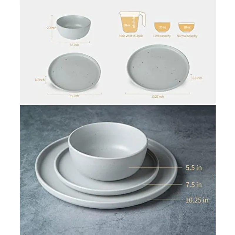 12 Piece Plates and Bowls Set, Speckled Dinnerware Sets for 4, Matte Dish Set, Microwave and Dishwasher Safe, tableware