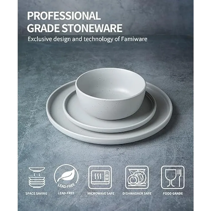 【Dishwasher & Microwave Safe】Our ceramic dinnerware are professionally tested to fit in your microwave. Easy to clean, you can also put them in the dishwasher. Their superior durability and edge strength will ensure years of use.