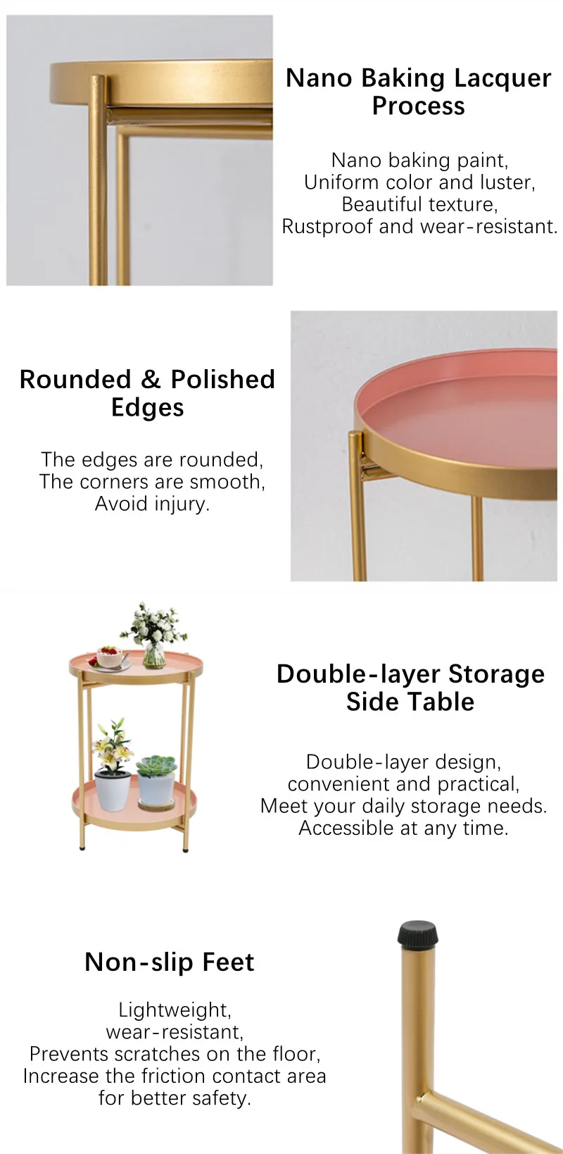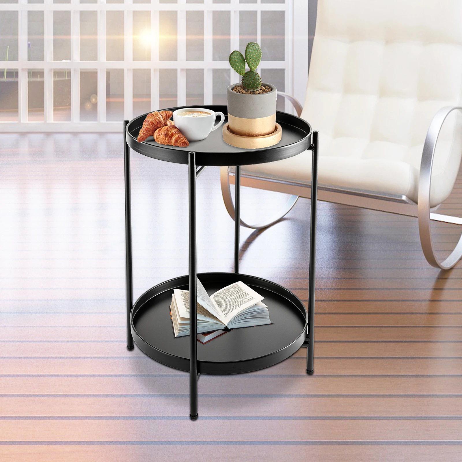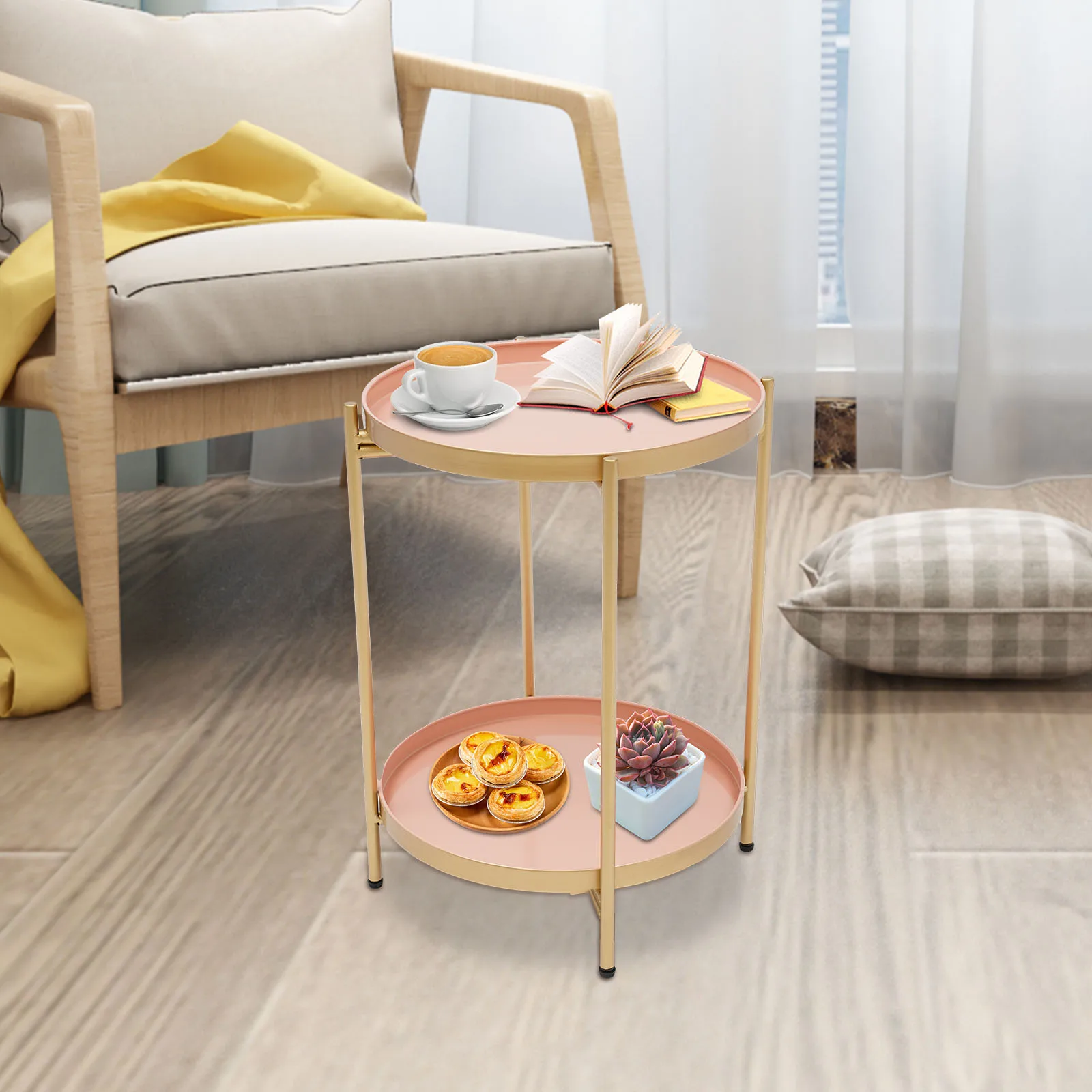Be the first to review “2-Tier End Table Folding Metal Round Side Table with Removable Tray for Living Room (Black/Gold/Golden Pink)”