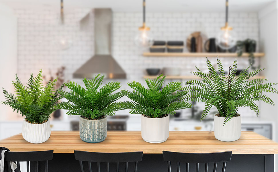 Faux Plant Indoor in Ceramic Pot 13″ Artificial Potted Fern Fake House Plants for Desk Office Bathroom Garden Decoration