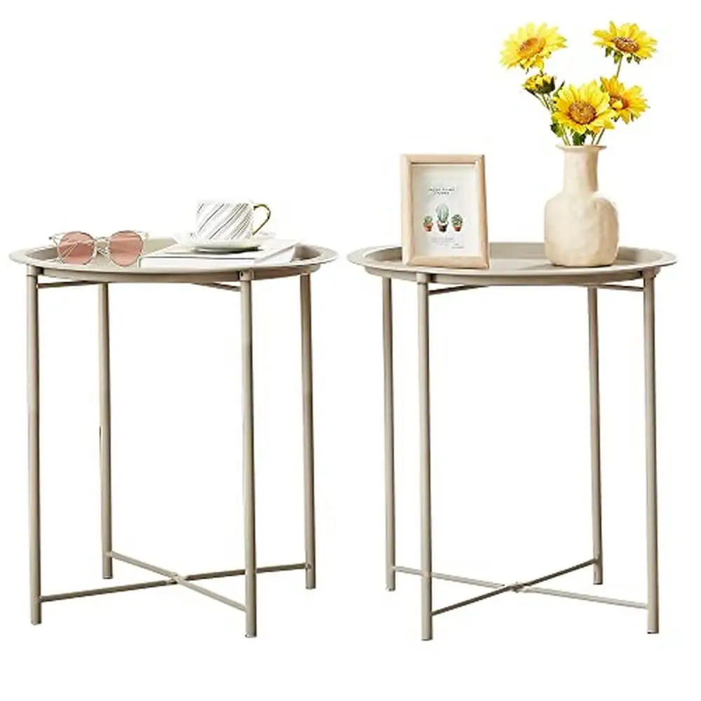 Small Round Side End Table, Sofa Table, Tray Side Table, Snack Table, Metal, Anti-Rusty, Outdoor and Indoor Use for Putting Small Things, Multi-use