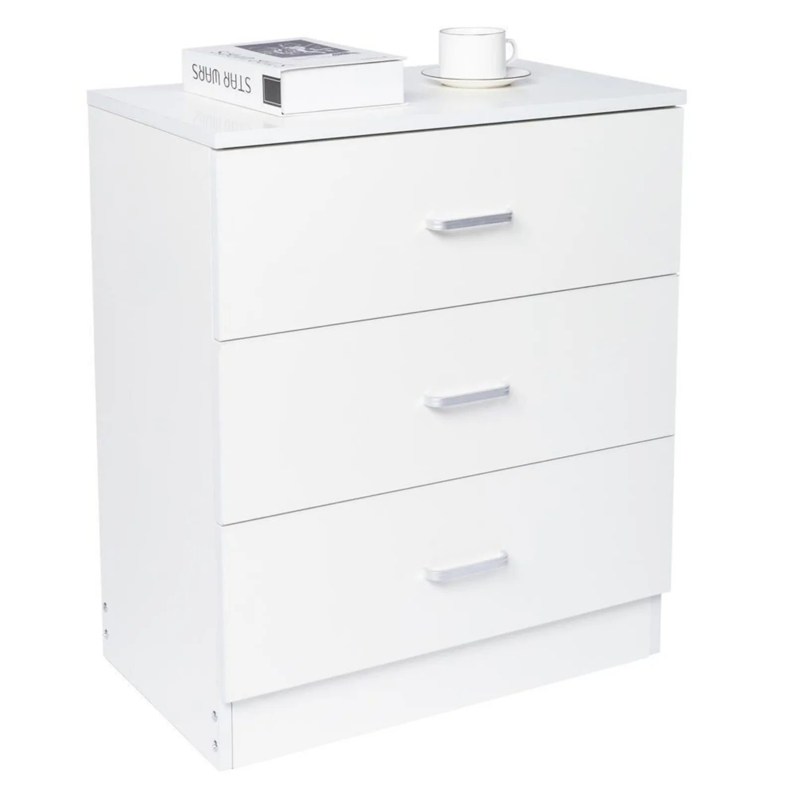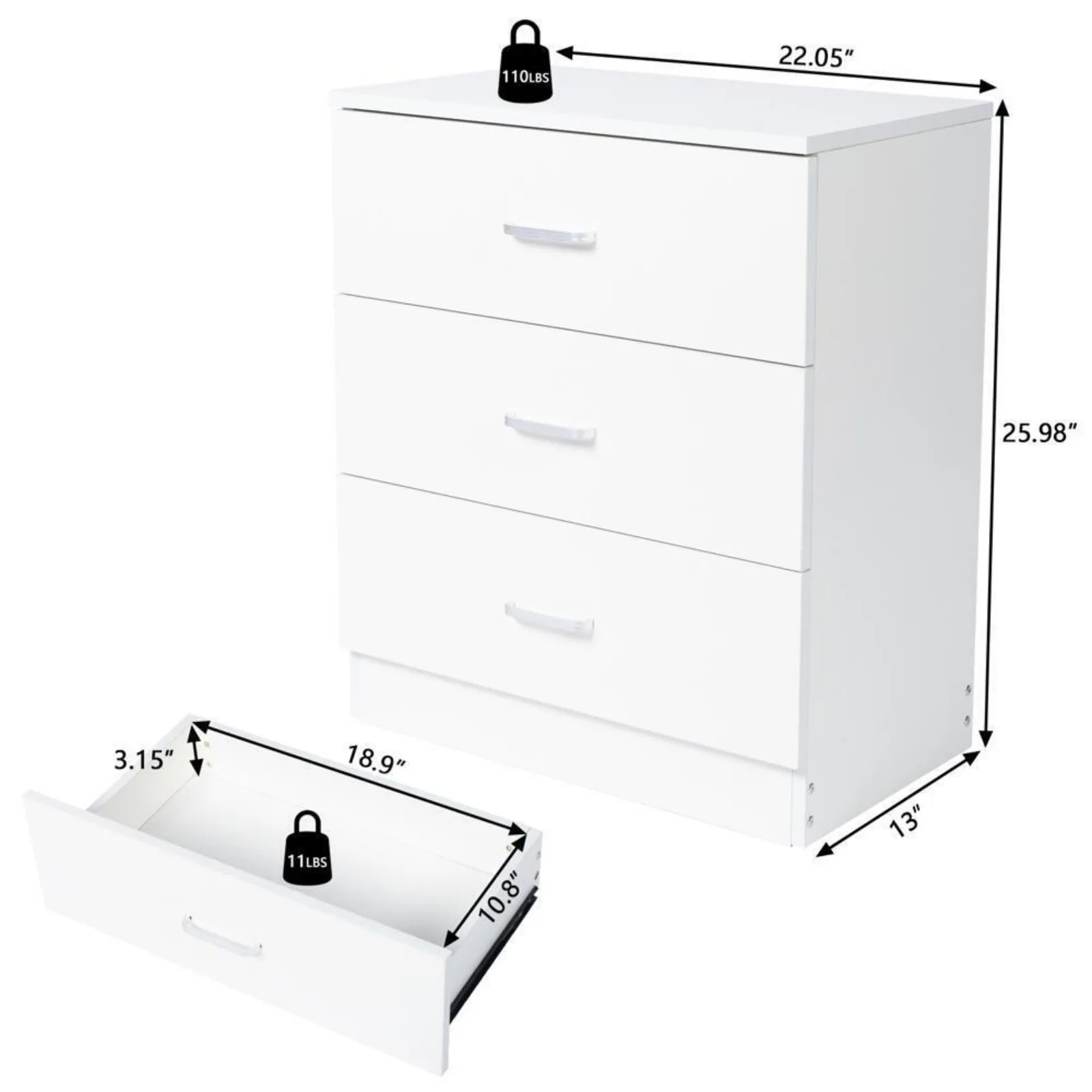 Heavy Duty: 3 Drawers nightstand is constructed of P2 wood material and aluminum handles, sturdy and durable to use