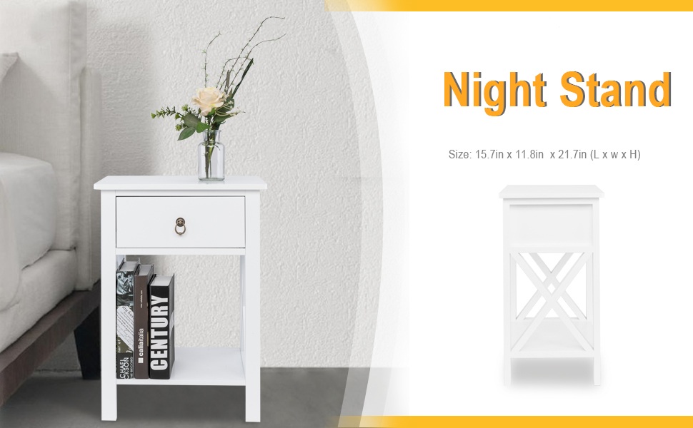 Bonnlo Bedside Nightstand 24.5-inch Tall End Tables, White